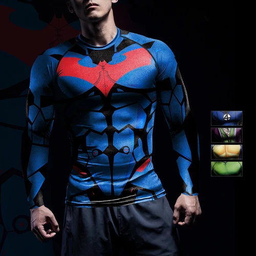 나단바오 수영 남성용 래쉬가드 운동 티 맨 코스프레, 슈퍼 히어로 긴팔 수영복, 피트니스 스포츠 압축 셔츠 상의