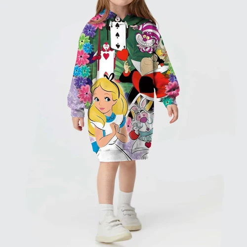 디즈니 인어 공주 소녀 신상 후드 프린트 패션 소녀 코스프레, 코스튬 느슨한 원피스 만화 소녀 상의