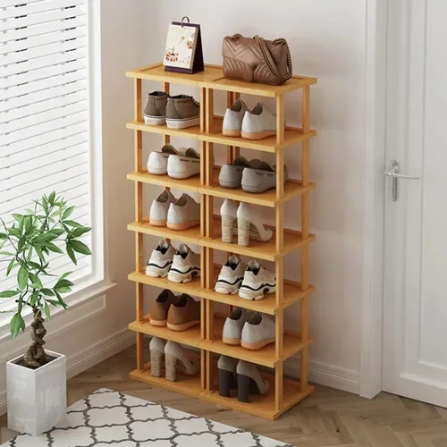 목재 신발거치대 다층 쌓을 수 있는 신발 정리함 좁은 입구 신발 선반, 가정용 대용량 보관 캐비닛