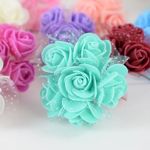 미니 장미 인조 꽃 부케 폼, 가짜 꽃, DIY 선물 액세서리, 웨딩 화환, 생일 파티 장식, 3.5cm, 12 개